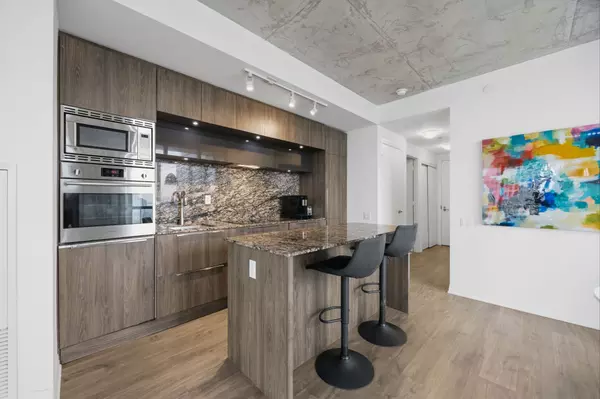 Experience the pinnacle of King West living at the prestigious Bisha Hotel & Residences. This highly desirable 2-bedroom, 2-bathroom suite features a preferred split-bedroom layout, offering 843 sq. ft. of functional luxury and a 109 sq. ft. balcony with sweeping northwest views. The interior strikes a perfect balance between industrial chic and modern elegance, showcasing exposed concrete ceilings, dramatic floor-to-ceiling windows, and a sleek open-concept kitchen with a central island and built-in appliances. Residents enjoy access to world-class amenities, including a rooftop infinity pool, and 24-hour concierge. With a Walk Score of 99 and Transit Score of 100, you are steps from the Rogers Centre, TIFF, and the city’s finest dining—this is not just a home, it is a statement in modern luxury.