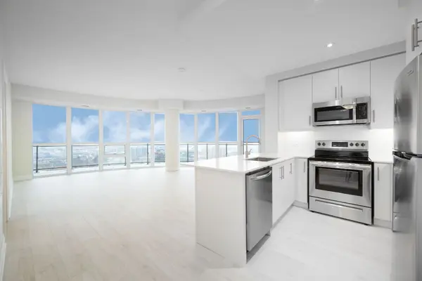 Discover elevated urban living at the Symphony Condos, perfectly situated in the heart of Brampton. This captivating suite is defined by its expansive floor-to-ceiling windows and a stunning wrap-around balcony that floods the home with natural light. Step through the bright foyer into a modern kitchen featuring quartz countertops, a sleek subway tile backsplash, and stainless steel Frigidaire appliances, all overlooking a pristine living area with spectacular views. The primary retreat offers a large walk-in closet and a private 3-piece ensuite with granite counters and a walk-in shower, while the versatile second bedroom serves ideally as a guest room or home office. Complete with a 4-piece main bath, in-suite laundry, one parking space, and one locker, this unit offers unmatched convenience just moments from Highway 410, shopping, dining, and health amenities.